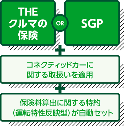 「コネぴた」は、保険種類が「THE クルマの保険」「SGP」契約で、「コネクティッドカーに関する取扱い」を適用し、